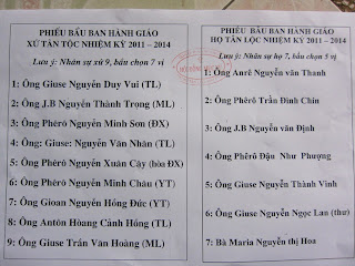 BẦU BAN THƯỜNG TRỰC HỘI ĐỒNG MỤC VỤ HAI CẤP XỨ VÀ HỌ. NHIỆM KỲ 2011 – 2014